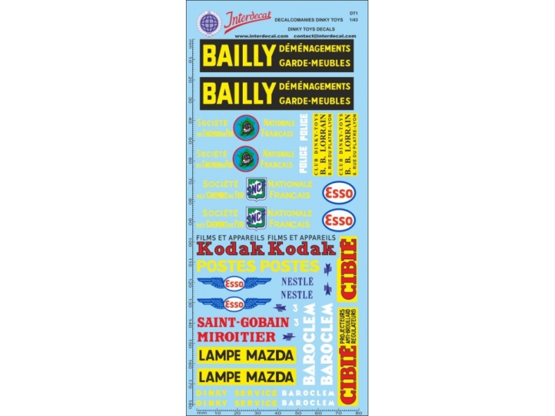 Planche permettant de decorer des véhicules Dinky Toys au 1/43 et également servir pour des gros camions ou des publicités murales au 1/87